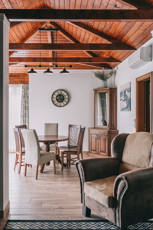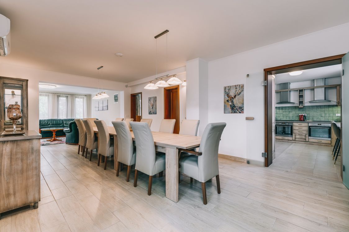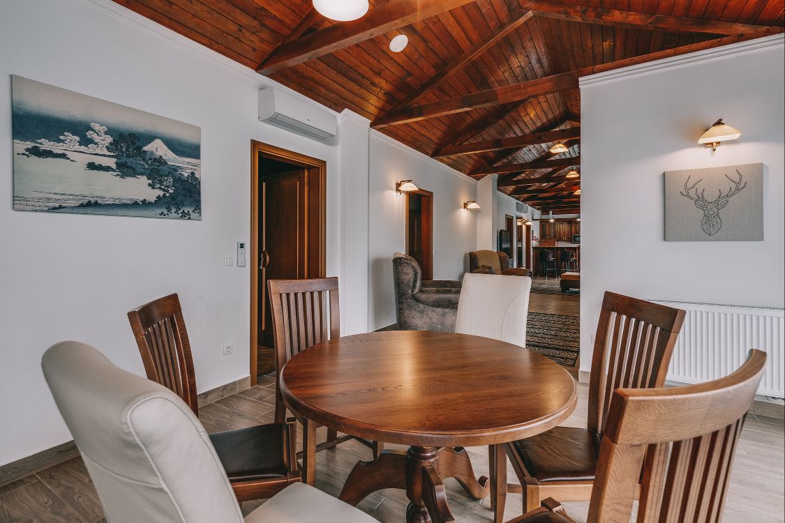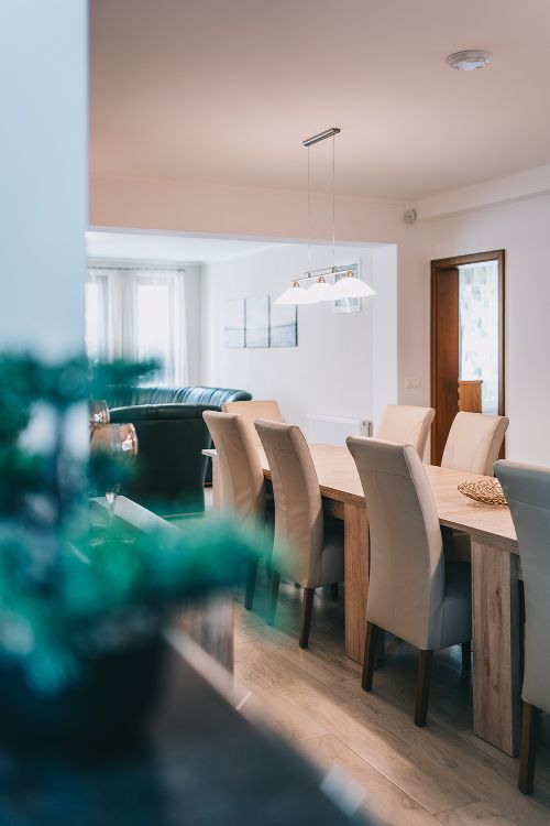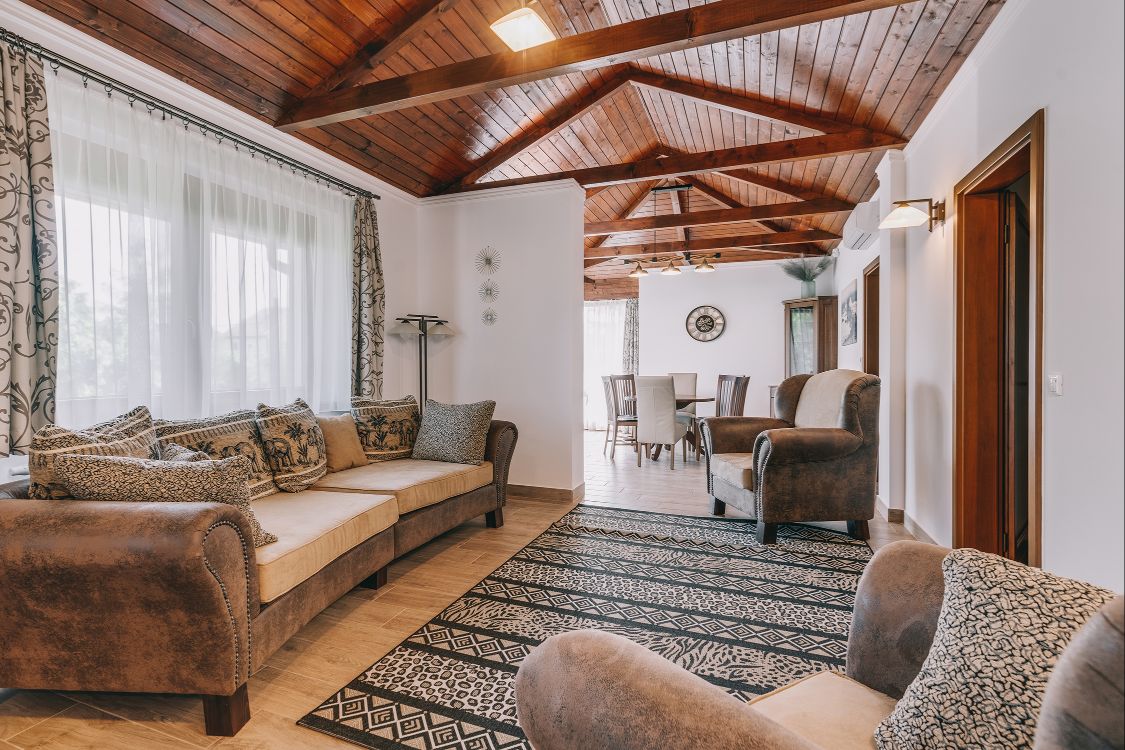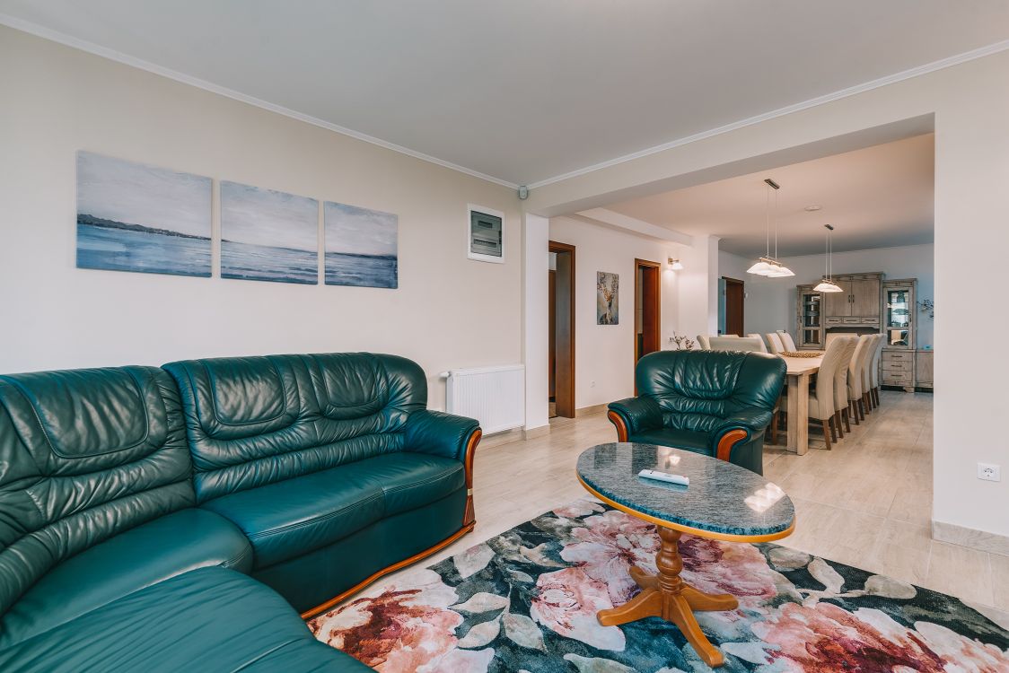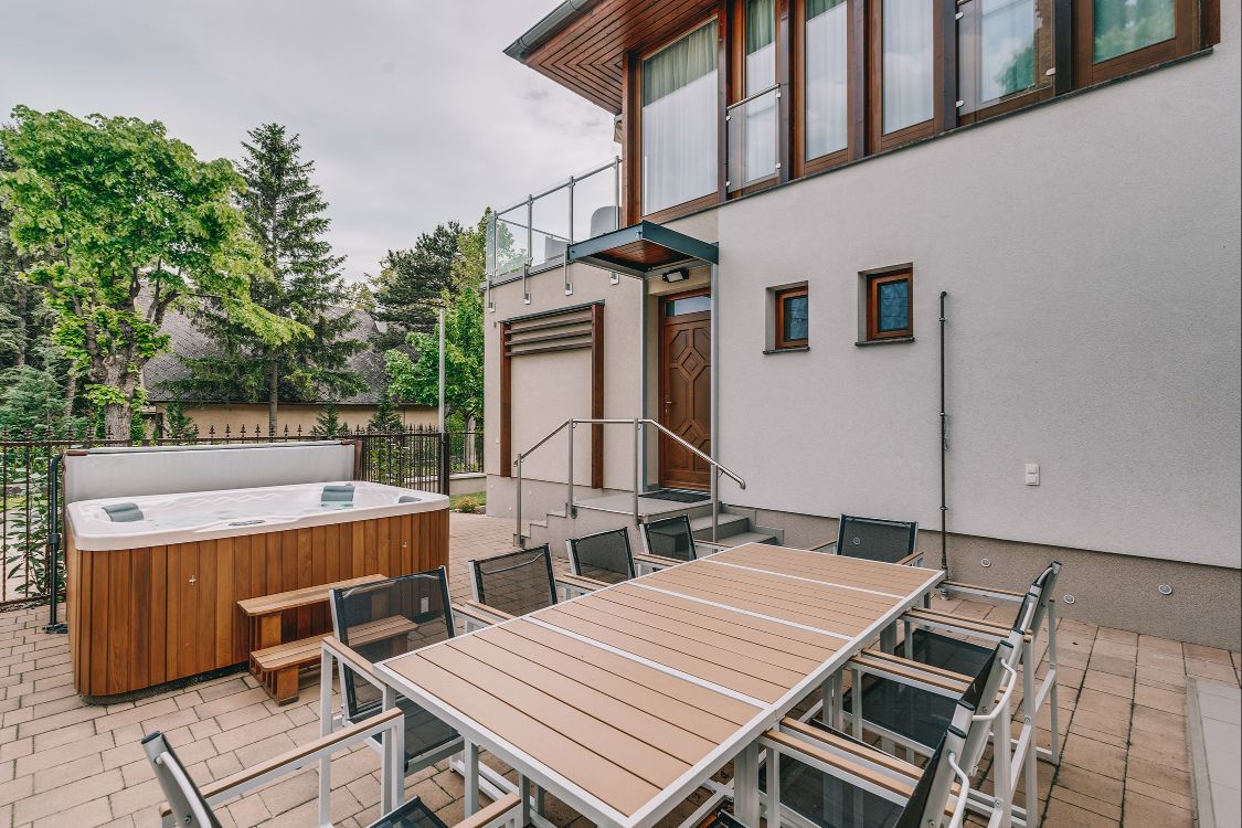 Ha többen érkeztek, mint 4 fő, akkor számotokra a kétszintes nagy apartman lesz ideális választás, mely öt szobával rendelkezik és melyek mindegyikéhez szintén saját fürdőszoba is tartozik. Hatalmas közösségi terek, kinti és benti pihenősarkok, szeparék, napozóteraszok, és egy jól felszerelt hatalmas konyha is rendelkezésre áll, ha épp főznétek közösen valami finomat és nincs kedvetek kimozdulni az apartmanból. A konyhában két sütő és több főzőlap is van, ha nagy a társaság és a tagjai különbözően táplálkoznak. Az étkezés számukra így kényelmesen megoldható.