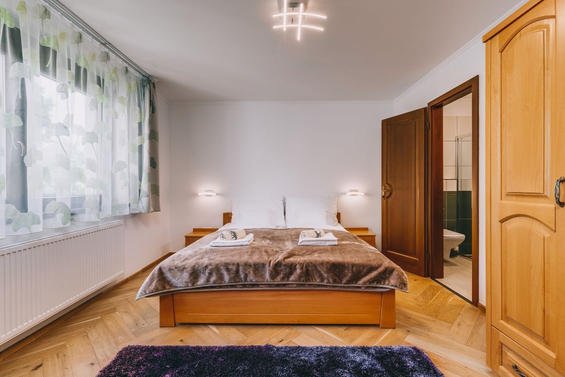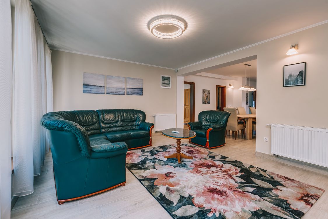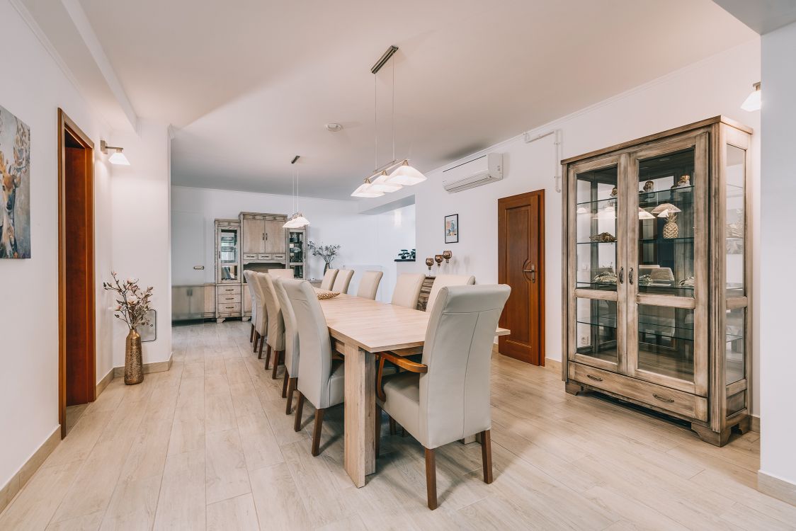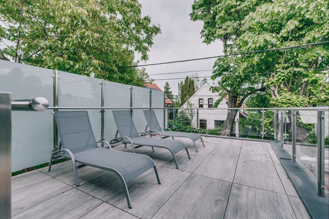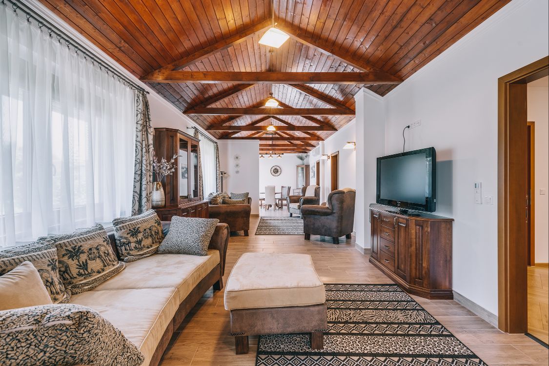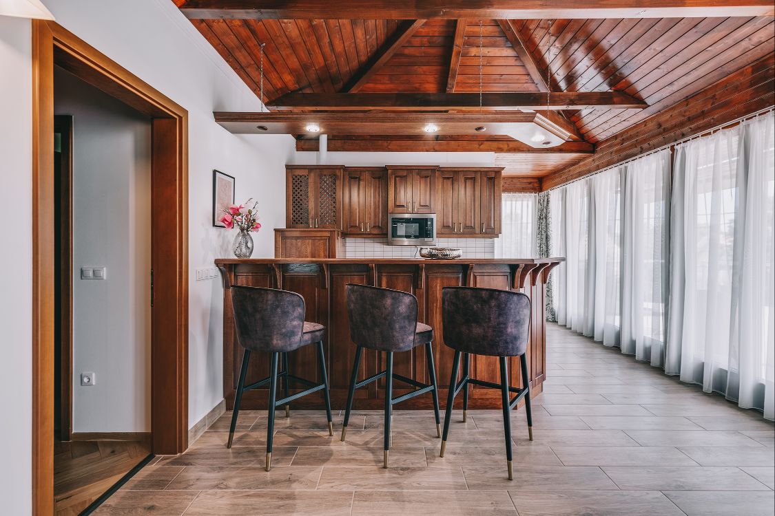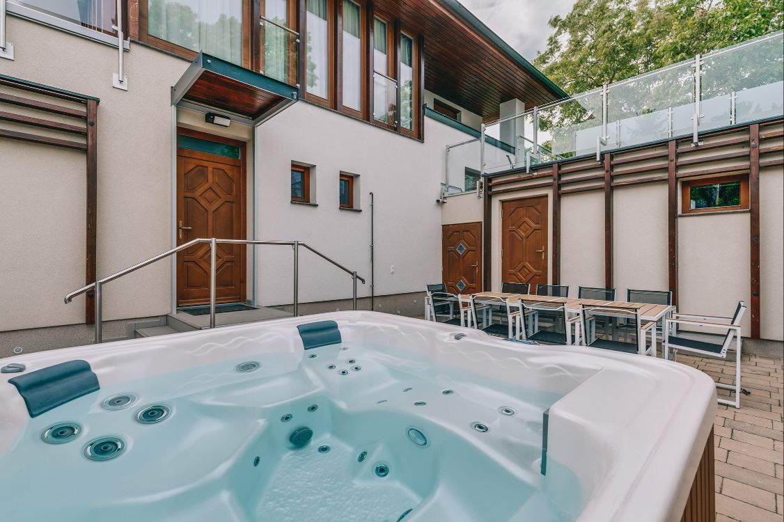 Ha többen érkeztek, mint 4 fő, akkor számotokra a kétszintes nagy apartman lesz ideális választás, mely öt szobával rendelkezik és melyek mindegyikéhez szintén saját fürdőszoba is tartozik. Hatalmas közösségi terek, kinti és benti pihenősarkok, szeparék, napozóteraszok, és egy jól felszerelt hatalmas konyha is rendelkezésre áll, ha épp főznétek közösen valami finomat és nincs kedvetek kimozdulni az apartmanból. A konyhában két sütő és több főzőlap is van, ha nagy a társaság és a tagjai különbözően táplálkoznak. Az étkezés számukra így kényelmesen megoldható.