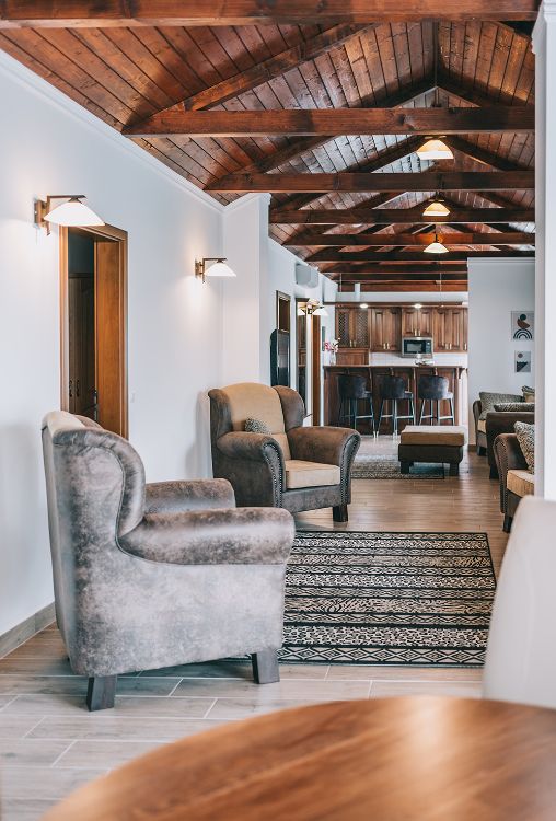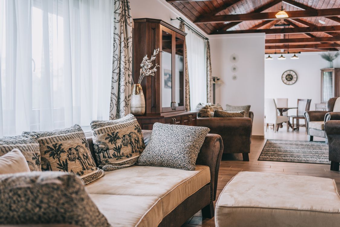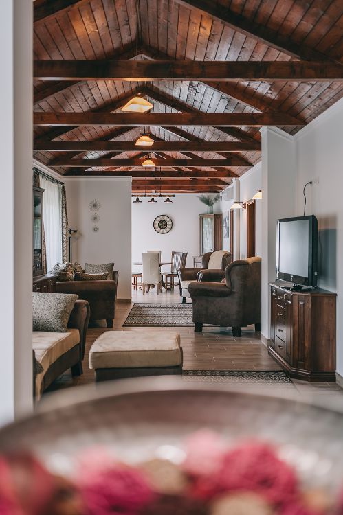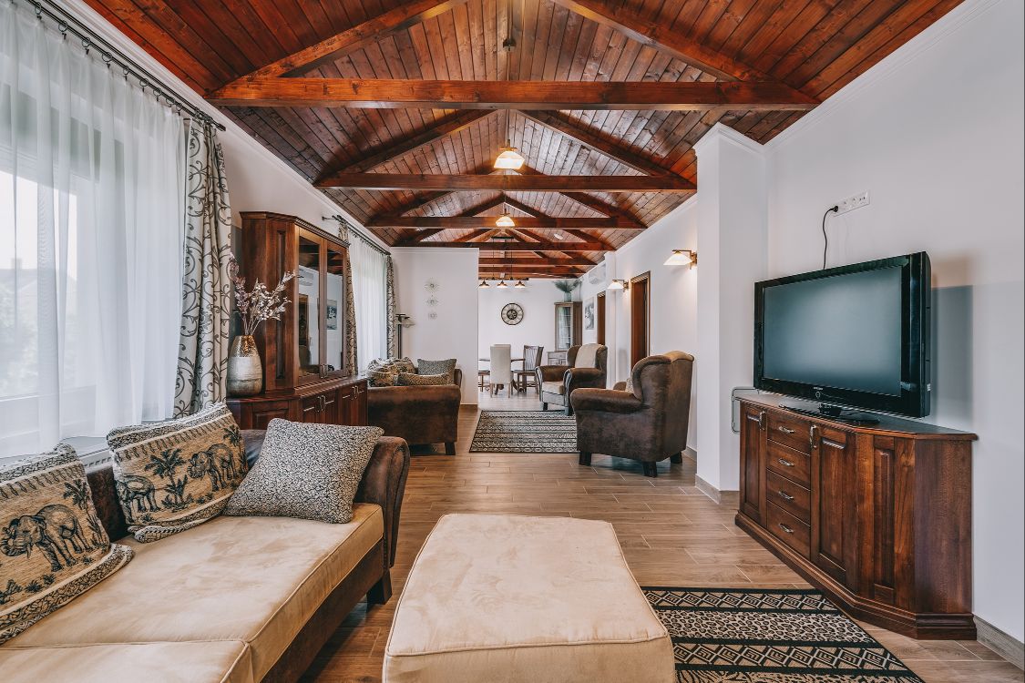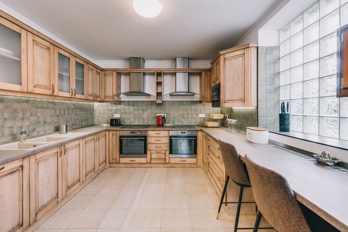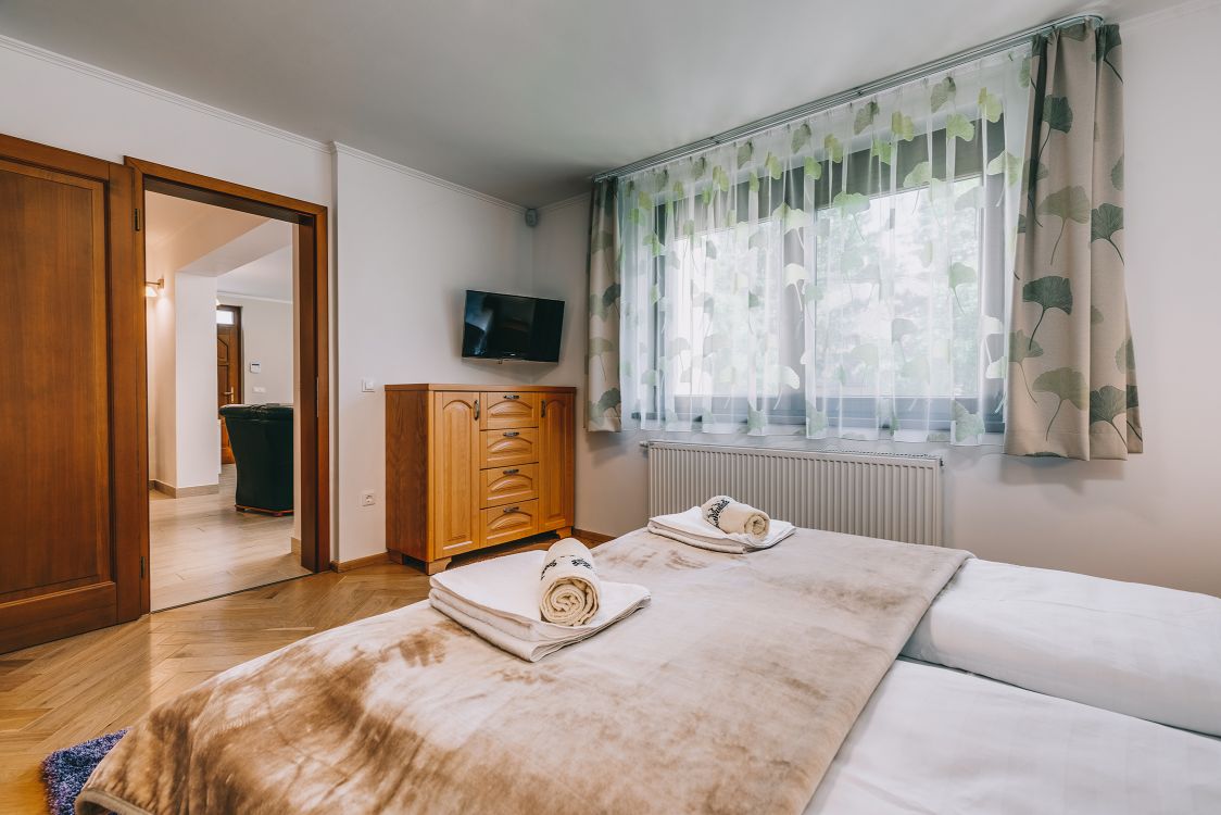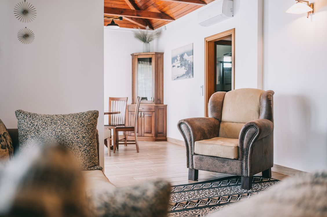 Ha többen érkeztek, mint 4 fő, akkor számotokra a kétszintes nagy apartman lesz ideális választás, mely öt szobával rendelkezik és melyek mindegyikéhez szintén saját fürdőszoba is tartozik. Hatalmas közösségi terek, kinti és benti pihenősarkok, szeparék, napozóteraszok, és egy jól felszerelt hatalmas konyha is rendelkezésre áll, ha épp főznétek közösen valami finomat és nincs kedvetek kimozdulni az apartmanból. A konyhában két sütő és több főzőlap is van, ha nagy a társaság és a tagjai különbözően táplálkoznak. Az étkezés számukra így kényelmesen megoldható.